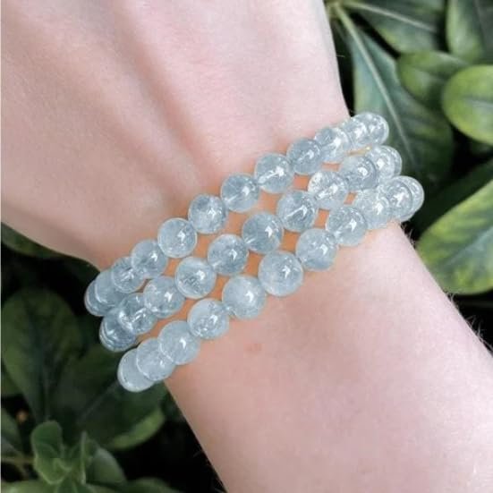 Aquamarine is associated with the throat chakra, enhancing communication and self-expression. It empowers you to speak your truth with clarity and confidence, making it easier to convey your thoughts and emotions., ?Perfect Healing Bracelet? Embrace the vibrant and harmonizing vibes of natural crystal stone. Natural stone bracelet can promote balance, allowing you to navigate life with confidence and enthusiasm. May wearing this spiritual crystal bracelet brings you some healing energy., ?Certified Natural Crystal GemStone Bracelet ?The natural gemstones define the unique beauty of each piece, so every piece is unique. These stone beaded bracelets fit for women and men, will go well with your any outfits., ?100% Genuine Gemstones ?The semi-precious gemstone bracelets are made with hand selected 8mm round high quality beads, safe and durable, do not irritate the skin. The weight and the ice-cold touch on the surface are really nice. These stones are quite beautiful without flaws, shiny and good polished., ?Handmade bracelet Size ?Round bead size is 8mm, Bracelet length is about 7.5 inches, comfortable and easy to wear.Which can suit for most wrist.