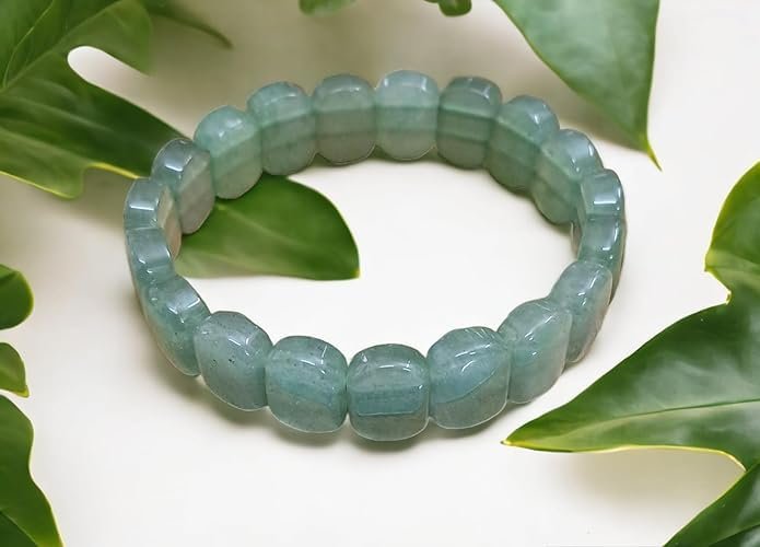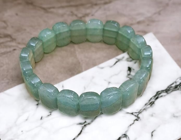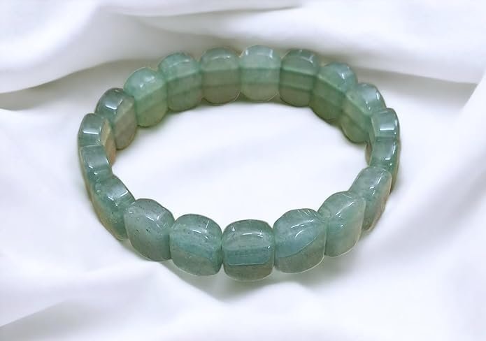 Pure Green Aventurine Flat Faceted Certified 10 mm Unisex Bracelet for Abundance, Prosperity, Self Love, Wealth and Protection, For those looking for love in their mature years, Green Aventurine may be used as a love crystal or added to a Heart Chakra layout as it encourages love later in life., Aventurine is ideal for soothing quick-tempers or brutal temperaments, and can greatly diminish the effects of domestic strife between spouses., Green Aventurine healing properties can help with physical, emotional, and spiritual balance and issues. It has healing powers to help with physical ailments and emotional issues. It is also used in Energy Healing and Chakra balancing. Green Aventurine healing crystal therapies include slowing the aging process, awakening latent memories, and balancing the Heart Chakra., Green Aventurine?s soothing energy balances the emotional body, guiding one toward inner harmony. It calms nervousness, anger, and irritation, and helps dissolve the everyday stress of a hectic lifestyle. It quiets roving thoughts and enhances sleep while providing a gentle grounding effect on one?s vibrational field. It releases the notion that every event must be analyzed.