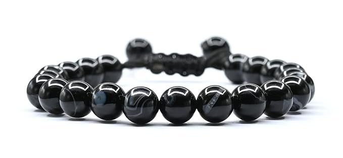 Banded Agate is seen as a healing stone of calm, good luck and wealth. It tends to have a gentle energy that works on the subtle bodies and energies, they are great for achieving stability and balance in many aspects of one’s life., Unisex – Good Matching for Men and Women, Boys and Girls., Round bead size is 8mm, inner Length of bracelet is 7 inches and as it is Adjustable so it can extend upto 10 inches as well as convenient to put on or take off., These Crystal bead bracelets are made with hand selected 8mm round high quality beads, safe and durable, do not irritate the skin.