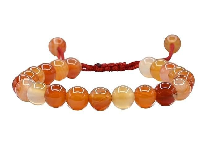 Carnelian is said to enhance motivation and increase one’s courage. Wearing a carnelian bracelet may help individuals recognize their self-worth and embrace their individuality., Unisex – Good Matching for Men and Women, Boys and Girls., Round bead size is 8mm, inner Length of bracelet is 7 inches and as it is Adjustable so it can extend upto 10 inches as well as convenient to put on or take off., These Crystal bead bracelets are made with hand selected 8mm round high quality beads, safe and durable, do not irritate the skin.