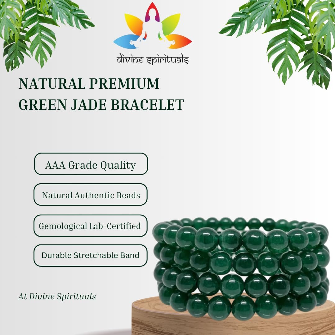 Lab Certified AAA Grade Natural Green Jade Unisex Bracelet 8mm Stretchable Original Real Crystal ‘Stone of Good Luck’ Bracelet For Peace & Manifestation