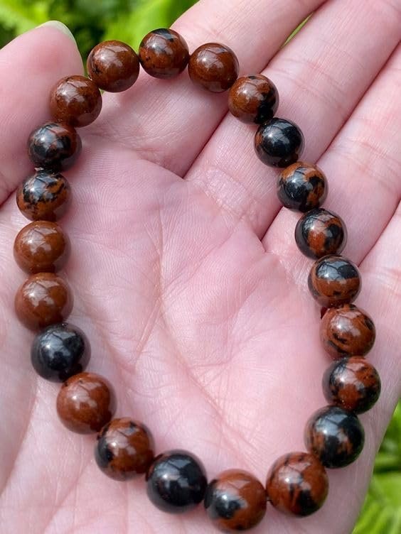 Some individuals use Mahogany Obsidian to stimulate creativity and innovation. It is believed to inspire new ideas. Wearing a Mahogany Obsidian bracelet may boost one’s inner strength and resilience., ?Perfect Healing Bracelet? Embrace the vibrant and harmonizing vibes of natural crystal stone. Natural stone bracelet can promote balance, allowing you to navigate life with confidence and enthusiasm. May wearing this spiritual crystal bracelet brings you some healing energy., ?Certified Natural Crystal GemStone Bracelet ?The natural gemstones define the unique beauty of each piece, so every piece is unique. These stone beaded bracelets fit for women and men, will go well with your any outfits., ?100% Genuine Gemstones ?The semi-precious gemstone bracelets are made with hand selected 8mm round high quality beads, safe and durable, do not irritate the skin. The weight and the ice-cold touch on the surface are really nice. These stones are quite beautiful without flaws, shiny and good polished., ?Handmade bracelet Size ?Round bead size is 8mm, Bracelet length is about 7.5 inches, comfortable and easy to wear.Which can suit for most wrist.