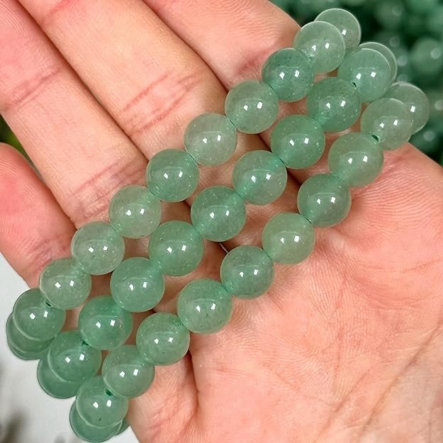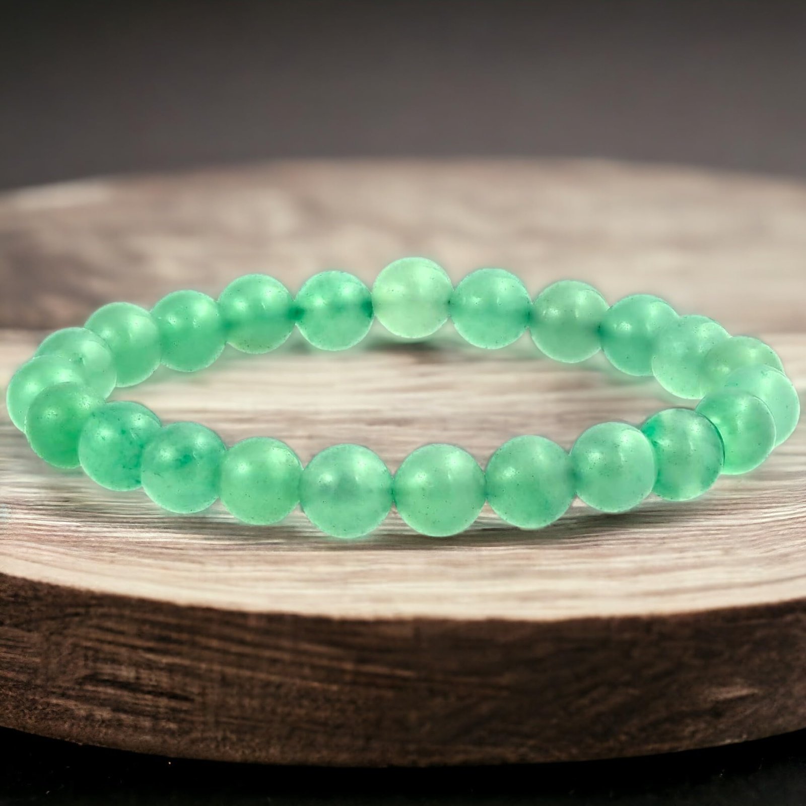 This AAA Grade 8mm Natural Green Aventurine Bracelet is made from natural beads of Green Aventurine highlighting green hue of the crystal and promising authenticity of the bracelet by providing a certificate from reputed gemological lab., The beads of this bracelet are typically smooth, polished, and uniform in size, creating a visually appealing and cohesive look. Bracelet is well-crafted with attention to detail. The beads are securely strung together, and the band used is durable to ensure longevity. This professionally crafted bracelet has a sturdy yet flexible construction, Green Aventurine is a revered healing crystal known for its multifaceted qualities. This crystal brings luck & abundance, attracting prosperity & opportunities into one’s life. Green Aventurine balances heart chakra, fostering harmony & calmness. It is a powerful ally in alleviating stress and anxiety., This crystal is celebrated for its physical healing properties, promoting a healthy circulatory system and enhancing the body’s natural healing abilities by supporting the immune system. As a versatile and well-rounded crystal, Green Aventurine is known for its ability to harmonize mind, body, and spirit, making it a cherished companion on the journey toward holistic well-being., This Green aventurine bracelet is created with the intention of harnessing the internal healing properties associated with the crystal. This includes promoting emotional well-being, attracting prosperity & fostering positive energy. This bracelet is not just a piece of ornament but a true companion in meditation for crystal-lovers.