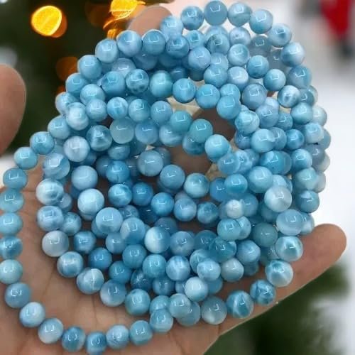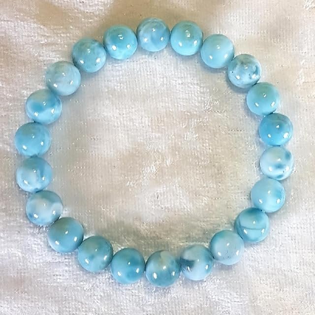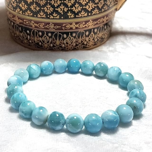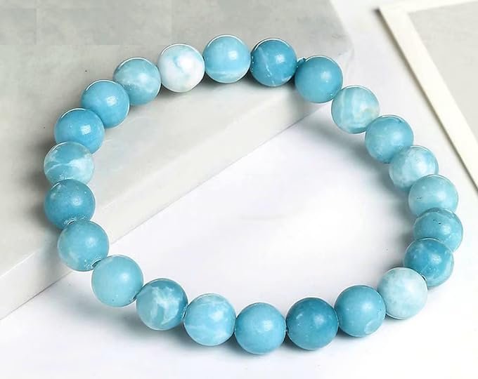 Larimar is said to?enlighten and heal in a physical, emotional, mental and spiritual way. It stimulates the heart, throat, third eye and crown chakras facilitating inner wisdom and outer manifestation. It represents peace and clarity, radiating healing and love energy., ?Perfect Healing Bracelet? Embrace the vibrant and harmonizing vibes of natural crystal stone. Natural stone bracelet can promote balance, allowing you to navigate life with confidence and enthusiasm. May wearing this spiritual crystal bracelet brings you some healing energy., ?Certified Natural Crystal GemStone Bracelet ?The natural gemstones define the unique beauty of each piece, so every piece is unique. These stone beaded bracelets fit for women and men, will go well with your any outfits., ?100% Genuine Gemstones ?The semi-precious gemstone bracelets are made with hand selected 8mm round high quality beads, safe and durable, do not irritate the skin. The weight and the ice-cold touch on the surface are really nice. These stones are quite beautiful without flaws, shiny and good polished., ?Handmade bracelet Size ?Round bead size is 8mm, Bracelet length is about 7.5 inches, comfortable and easy to wear.Which can suit for most wrist.