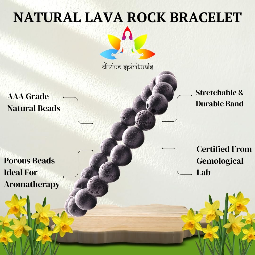 This AAA grade lab-certified Lava bracelet exudes a raw and elemental beauty with its porous black surface. Each meticulously crafted bead showcases the stone’s rugged texture, embodying the fiery energy of volcanic origins and offering a grounding presence., Lava stone is revered for its grounding properties, helping individuals establish a strong connection to the Earth’s energies. Its dense and solid nature provides a stable foundation, promoting feelings of security, stability, and resilience. Lava stone anchors the root chakra, facilitating a sense of groundedness and presence in the physical body. This grounding influence can help individuals navigate through turbulent times with confidence and strength., Lava stone is formed from molten lava, the result of intense heat and pressure deep within the Earth. As a result, lava stone is imbued with the energy of resilience, endurance, and strength. Just as it withstands the fiery forces of volcanic eruptions, lava stone encourages individuals to tap into their inner strength and overcome challenges with courage and determination., Tap into the energy of Lava with the Lava bracelet. This volcanic gemstone provides stability and strength, offering a connection to the Earth’s core. Adorn yourself with Lava to harness its fiery energy, empowering you to overcome challenges and ignite your passions with renewed vigor and determination., The ideal gift for birthdays, Valentine’s Day, and any special occasion, this item uplifts your loved ones with its divine energy and exquisite appearance. Not only is it highly durable, perfect for everyday wear, but it’s also effortlessly elegant for casual occasions. A symbol of lasting affection, it brings joy and comfort to those who receive it.