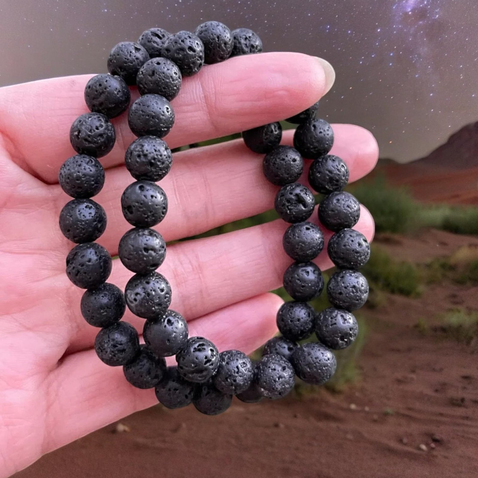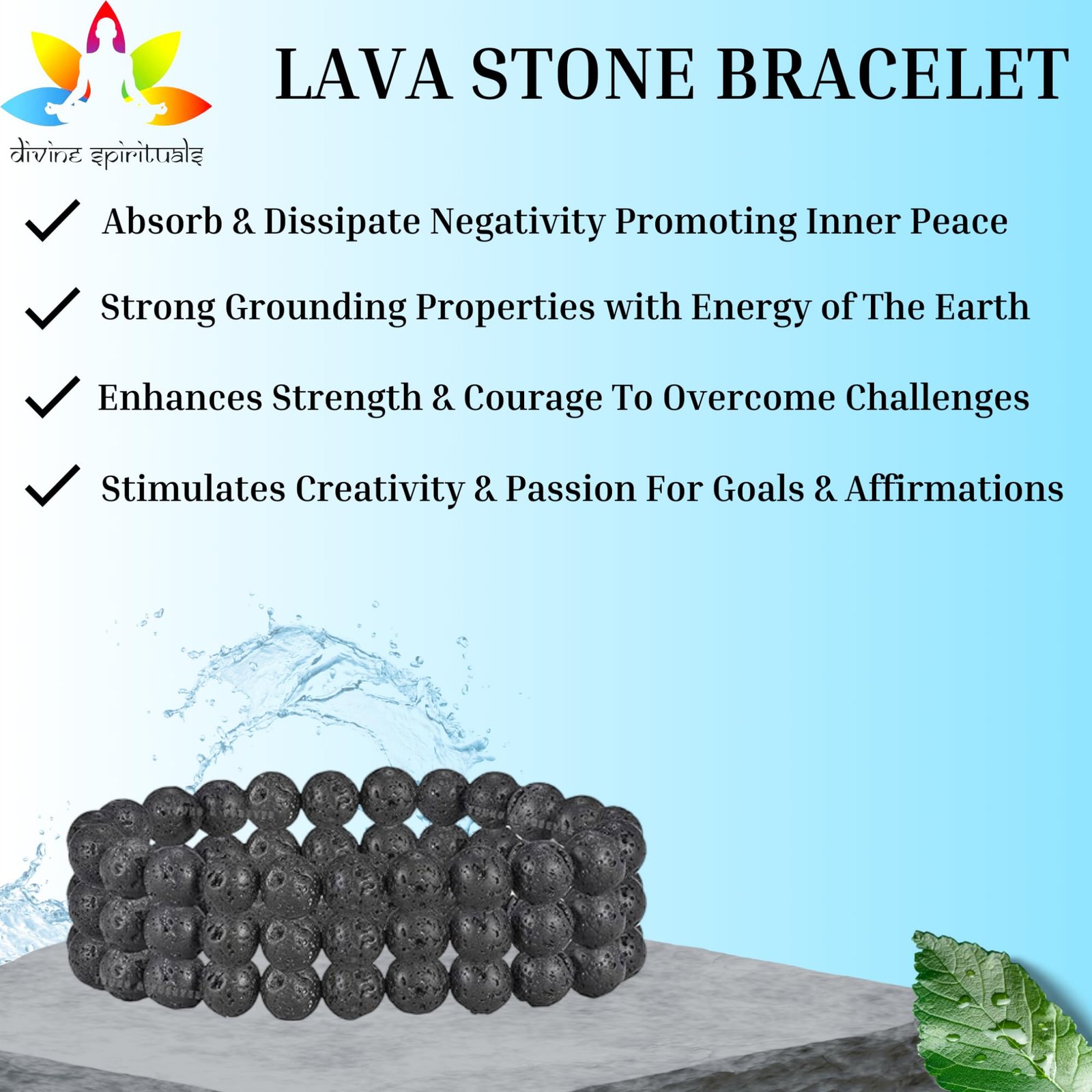 Natural Lava Bracelet Lab-Certified AAA Grade 8mm Stretchable Original Unisex Bracelet For Root Chakra, Grounding Energy, Protection, Protection & Manifestation