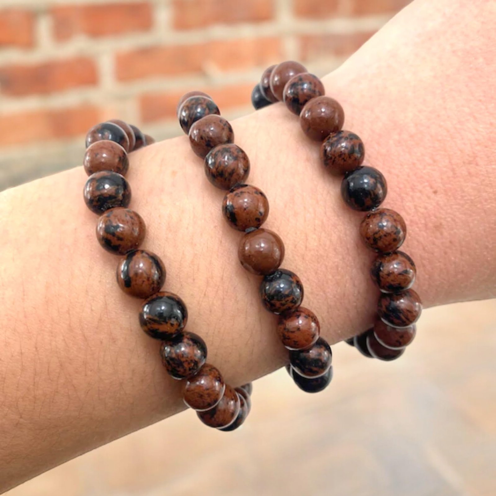 This AAA grade lab-certified Mahogany bracelet showcases rich, earthy hues reminiscent of warm mahogany wood. Each meticulously polished bead reveals intricate grain patterns, exuding a natural elegance that adds warmth and sophistication to any ensemble., Mahogany Obsidian is renowned for its grounding properties, helping individuals establish a strong connection to the Earth’s energies. Its stabilizing influence promotes a sense of security, balance, and stability, making it an ideal stone for those who feel disconnected or ungrounded. Mahogany Obsidian anchors the root chakra, facilitating a feeling of rootedness and presence in the physical body., Mahogany Obsidian is believed to provide emotional support and protection, particularly during times of upheaval or change. Its nurturing energy helps to release negative emotions, such as fear, anger, and anxiety, promoting emotional healing and resilience. Mahogany Obsidian acts as a protective shield, deflecting negative energies allowing individuals to feel safe and secure in their emotional space., This striking gemstone is celebrated for its rich, earthy tones and protective properties. Adorn yourself with Mahogany Obsidian to anchor your energy, dispel negativity, and enhance strength and resilience. Let the nurturing embrace of Mahogany Obsidian guide you on a journey of stability and empowerment., This exceptional gift is perfect for birthdays, Valentine’s Day, or any special occasion. Crafted to uplift your loved ones, its divine beauty and lasting allure carry profound significance. Notably durable and comfortable for daily wear, it’s a heartfelt gesture that will be cherished for years to come.