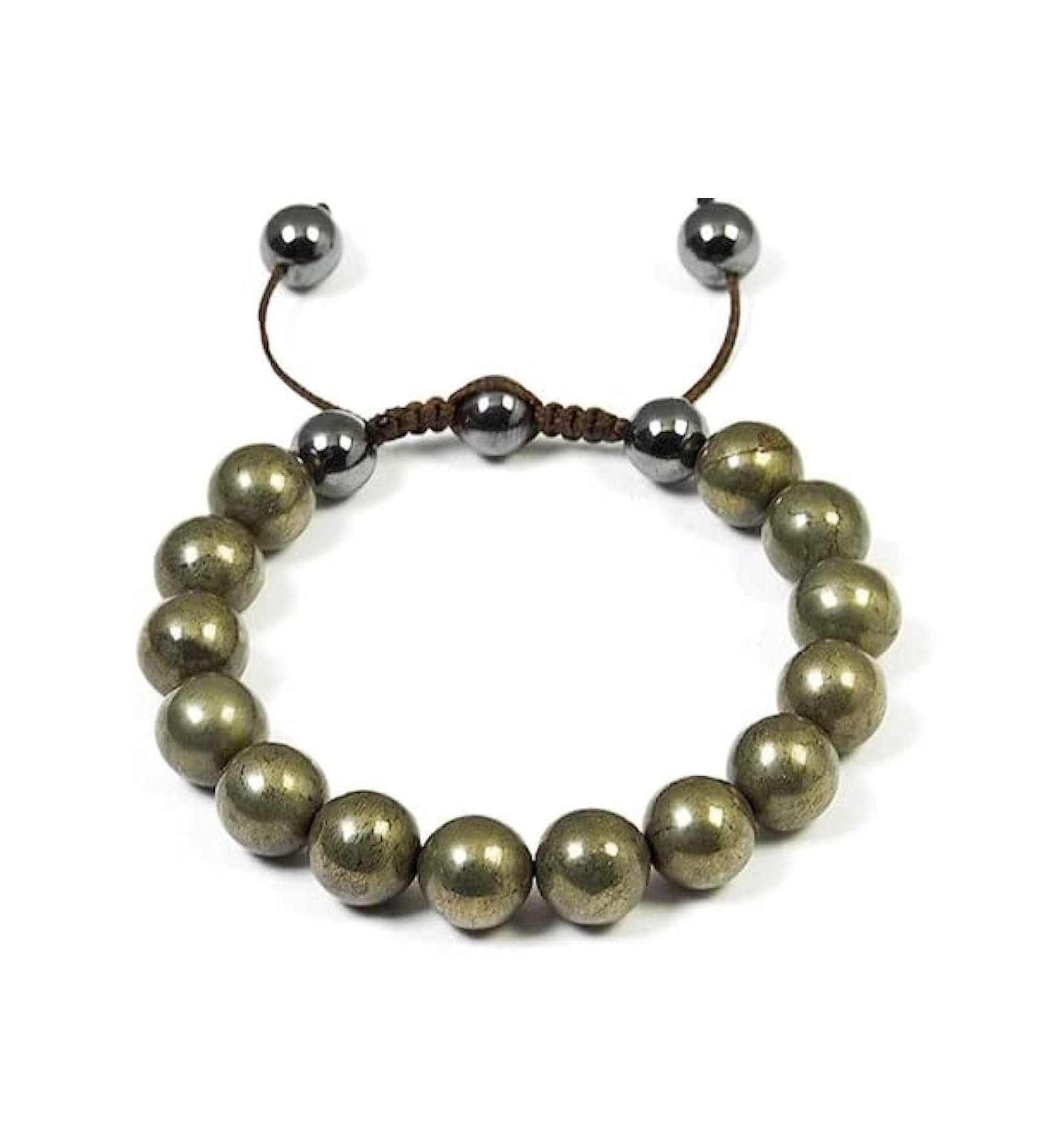 Natural Pyrite Stone Originial Real Crystal Money Magnet Lab Certified 8 mm Adjustable Thread Bracelet for Men and Women for Good Luck, Love, Abundance, Healing and Meditation, Pyrite – Stone of ? Attract Wealth ? Business Luck ? Boost stamina ? Abundance ? Prosperity ? Strengthens your Willpower ? Mental stability ? Creativity ? Learning and Perception ? Intelligence ? Logic ? Psychic development ? Memory ? Optimism ? Channeling abilities ? Practicality ? Protection ? Meditation ? Health ? Well ? Being ? Changing Bad Habits ? Confidence ? Empowerment ? Focus ? Grounding ? Vitality, Natural Pyrite Golden Beads Bracelet ? Money Magnet, Attract Wealth Prosperity Good Luck [Excellent Results] This crystal is for money and abundance. Pyrite attracts money, it?s known to be a money magnet. According to Crystal healing, having this crystal with you attracts wealth and fame., 100% Original & Natural Pyrite Bracelet [ Export Quality ] Made up of High-Quality Adjustable Thread ? It?s one size fits all. Pyrite found its name from the Greek word pyr, which means ?fire?, the French call it Pierre de Sante, meaning ?stone of health? as they say it positively affects the body?s health. PRODUCT DETAILS Item Type: Bracelet Material: Pyrite Stone Bead Size: 8mm Size: Adjustable Gender: Unisex, Pyrite is one of the best stones to attract business and career opportunities. Pyrite encourages leadership qualities. Pyrite will help you achieve your dreams. Pyrite inspires leadership qualities., Pyrite beads bracelet is known as a money magnet and brings success in your life. Pyrite gives your physical strength and motivation in your life. it is a good stone for those related to the property business.Gifiting Pyrite Stone is a perfect gift for someone special, starting a new business and job, student, businessman. it should be kept by every person who works in the office.
