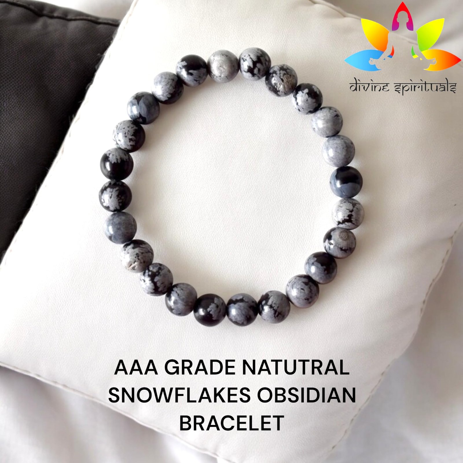 Natural Snowflake Obsidian Bracelet Lab-Certified AAA Grade 8mm Stretchable Real Crystal Bracelet For Root Chakra, Strength & Manifestation For Men & Women