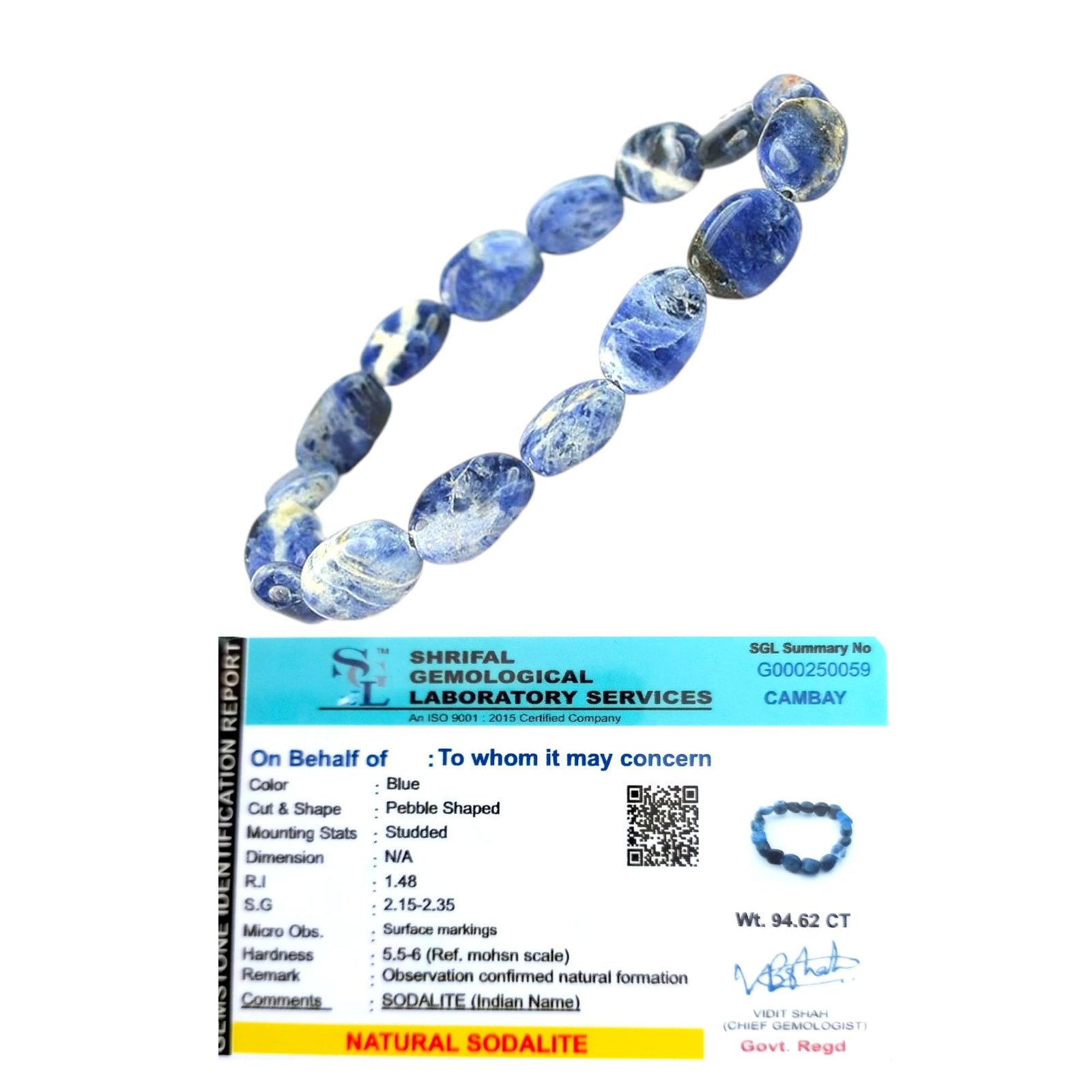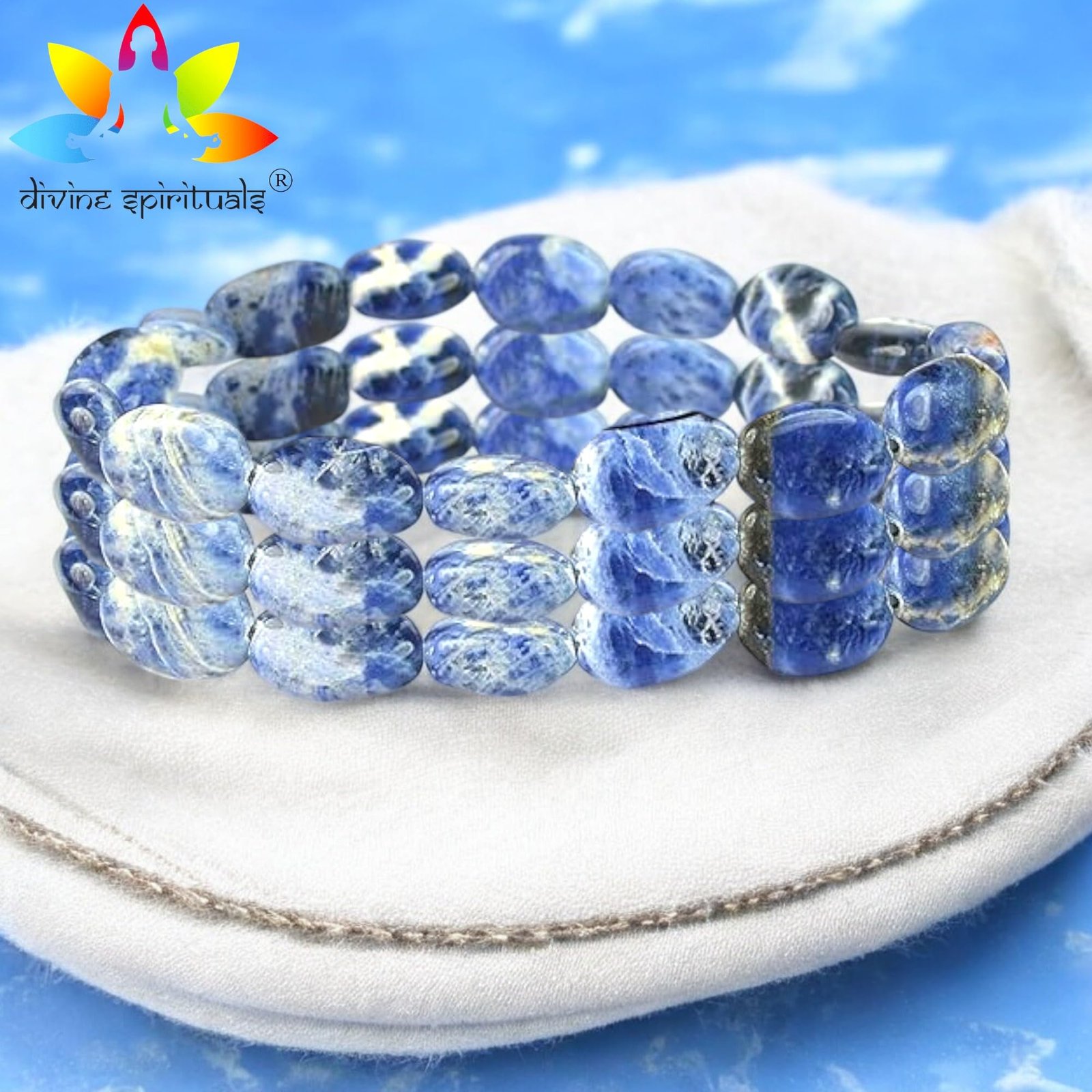 Premium Quality Pebble Oval Sodalite Beads: Crafted from authentic, AAA-grade Sodalite, this bracelet showcases smooth pebble-shaped beads with deep blue tones, beautifully complemented by natural white veining., Unisex Design for Versatile Wear: Designed for both men and women, this adjustable bracelet offers a comfortable fit and a sophisticated style suitable for casual and formal occasions alike., Certified Original and Authentic Stones: Each bead is certified as natural Sodalite, known for its powerful properties that enhance clarity, intuition, and emotional harmony., Symbol of Clarity, Intuition, and Balance: Sodalite is cherished for its ability to clear the mind, stimulate intuition, and promote emotional balance, making this bracelet a meaningful piece for those seeking inner peace and mental clarity., Beautifully Crafted for Maximum Appeal: The pebble-shaped beads are carefully selected for their rich blue hues and striking patterns, creating a bracelet that highlights the natural beauty and energetic properties of Sodalite.