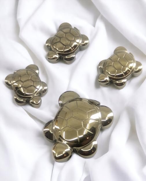 Pyrite Tortoise Carving, Pyrite Carved Lab Certified Crystal Tortoise Home Decoration, Gold Pyrite Crystal Tortoise Pocket Stone , Crystal Healing Stone / Pocket Pyrite Tortoise for Abundance – Size 1 Inch, Pyrite helps to remove anxiety and frustration. Pyrite helps to keep you strong, stable, and free of the chains of domination., Pyrite is also referred as Stone of Wealth., This crystal is for money and abundance. Pyrite has long been valued as a strong protection stone that shields the wearer from negative energy as well as environmental pollutants., Thus, this stone helps promote physical well-being as well. Stimulating the second and third chakras, pyrite enhances strength of mind and willpower